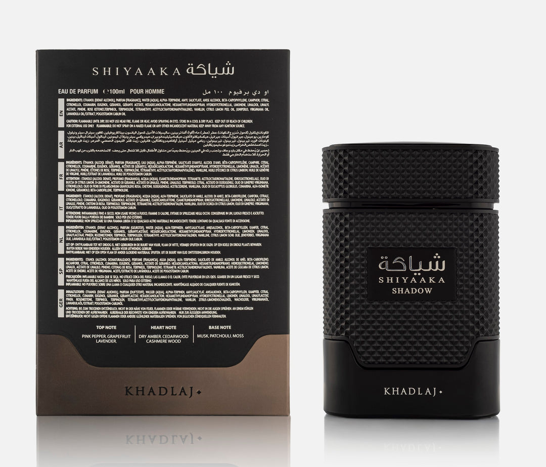 Unleash the power of presence with Shiyaaka Shadow – Special Edition, a premium fragrance for men by Khadlaj Perfumes. Crafted for the modern gentleman, this scent is a bold expression of charisma, depth, and quiet strength.
